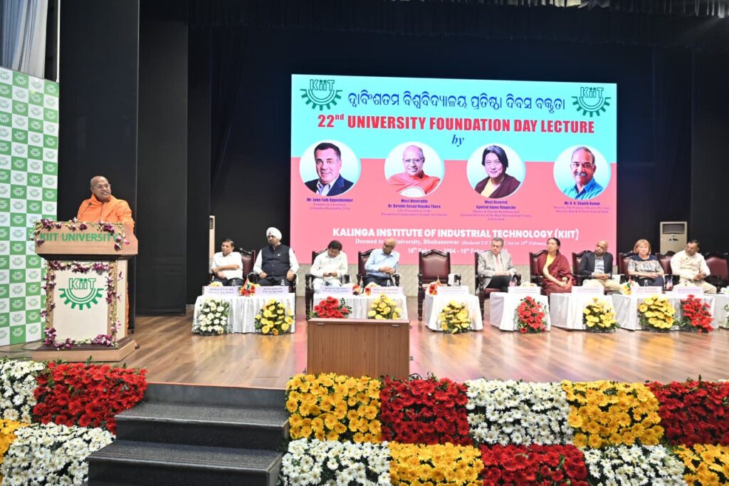 ଭୁବନେଶ୍ୱର : ସୋମବାର କିଟ ବିଶ୍ୱବିଦ୍ୟାଳୟ ୨୨ତମ ପ୍ରତିଷ୍ଠା ଦିବସ ପାଳିତ ହୋଇଯାଇଛି । ଏହି କାର୍ଯ୍ୟକ୍ରମରେ କଲମ୍ବିଆ ହସପିଟାଲିଟି ପ୍ରତିଷ୍ଠାତା ତଥା ଅଧ୍ୟକ୍ଷ ଜନ୍ ଓପେନହାଇମର; କଲମ୍ବୋ ହୁନୁପିଟିଆ ଗଙ୍ଗାରାମାୟ ମନ୍ଦିରର ମୁଖ୍ୟ ପଦାଧିକାରୀ ଡ କିରିଣ୍ଡେ ଆସାଜି ନାୟକ ଥେରୋ; ଦି ପ୍ରିଣ୍ଟର୍ସ (ମହୀଶୂର) ପ୍ରାଇଭେଟ୍ ଲିମିଟେଡର ନିର୍ଦ୍ଦେଶକ ଏବଂ ପ୍ରେସ୍ ଟ୍ରଷ୍ଟ ଅଫ୍ ଇଣ୍ଡିଆ ବୋର୍ଡର ପ୍ରାକ୍ତନ ନିର୍ଦ୍ଦେଶକ କେ.ଏନ୍. ଶାନ୍ତ କୁମାର; ଏବଂ ତିବତୀୟ ବୌଦ୍ଧ ଧର୍ମର ଗୁରୁ ତଥା ସ୍ୱିଜରଲ୍ୟାଣ୍ଡର ରିପା ଇଣ୍ଟରନ୍ୟାସନାଲ୍ ସେଣ୍ଟରର ଆଧ୍ୟାତ୍ମିକ ନିର୍ଦ୍ଦେଶକ ଗେତରୁଲ୍ ଜିଗମେ ରିନପୋଚେ ପ୍ରମୁଖ ଯୋଗଦେଇ ପ୍ରତିଷ୍ଠା ଦିବସ ବକ୍ତୃତ ପ୍ରଦାନ କରିଥିଲେ । ଏହି ଅବସରରେ ସେମାନଙ୍କୁ କିଟ ଜୀବନବ୍ୟାପୀ ସାଧନା ପୁରସ୍କାର ପ୍ରଦାନ କରାଯାଇଥିଲା।
